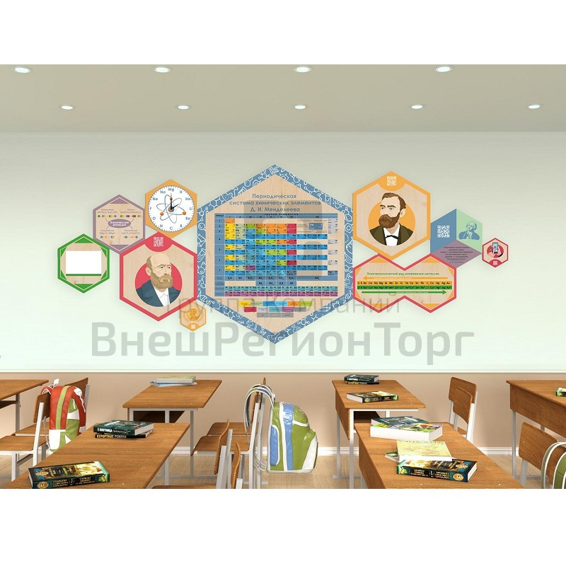 Образовательные панели для оформления стен школьных учреждений. Выполняют две функции: декор и соответствующее предмету обучение. Комплект состоит из набора гексагонов различного размера, которые можно комбинировать, исходя из вашего желания и конфигурации стен. Можно составить оригинальный дизайн, сочетая все шестигранники, а можно повесить их по отдельности.