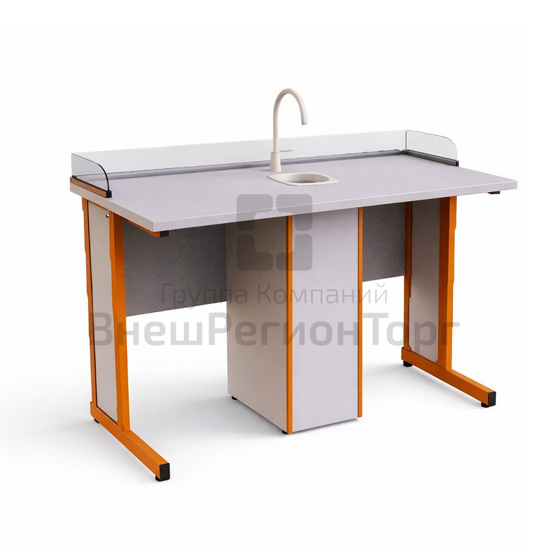 Стол ученический прямоугольная труба (зашивка и экран из ДСП) с сантехникой и бортом Оргстекло