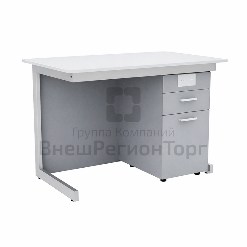 Стол преподавателя для кабинета физики/химии/биологии выполнен из металлического корпуса, со встроенной тумбой. Размер столешницы 1200*750*750. Столешница изготовлена из ДСП, покрытие химически стойкий пластик толщиной 0,8мм. В столу подведено электричество и установлены розетки.