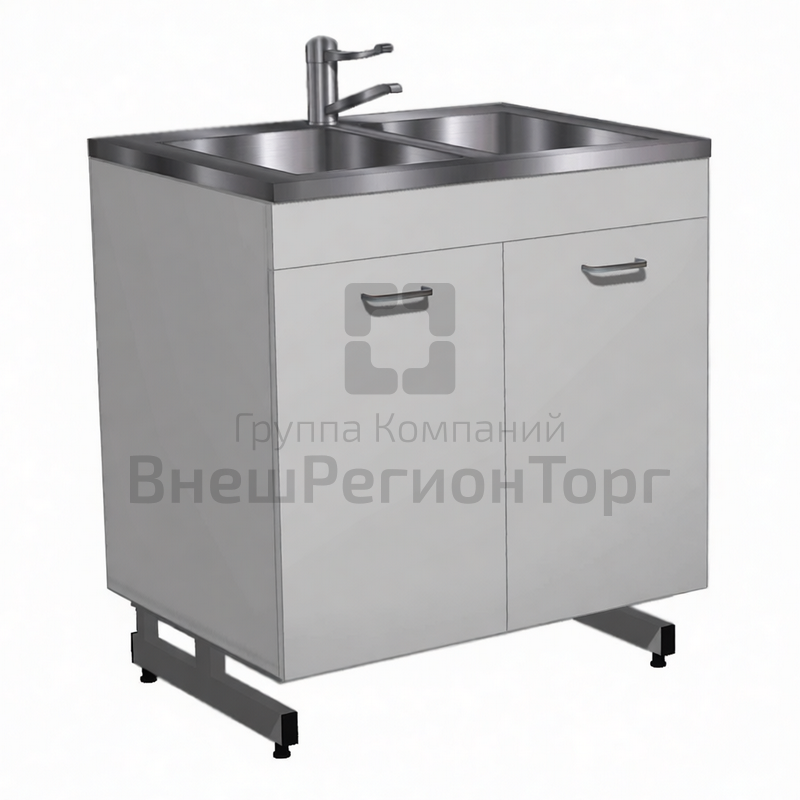 Столешница: мойка двухчашевая, накладная, нержавеющая сталь. В комплект входит локтевой смеситель.