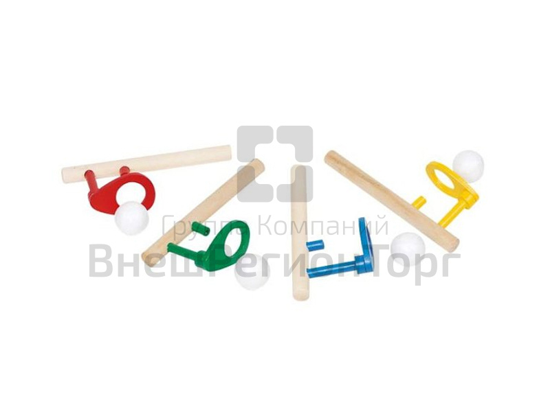 Игрушка состоит из деревянного мундштука, поддерживающего пластикового кольца и 2-х пенопластовых шариков.