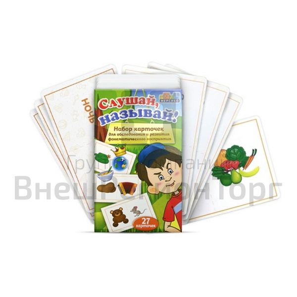 Комплект из 27 карточек для развития фонематического восприятия. С ним вы обследуете речевой слух ребенка и проведете коррекционные занятия.