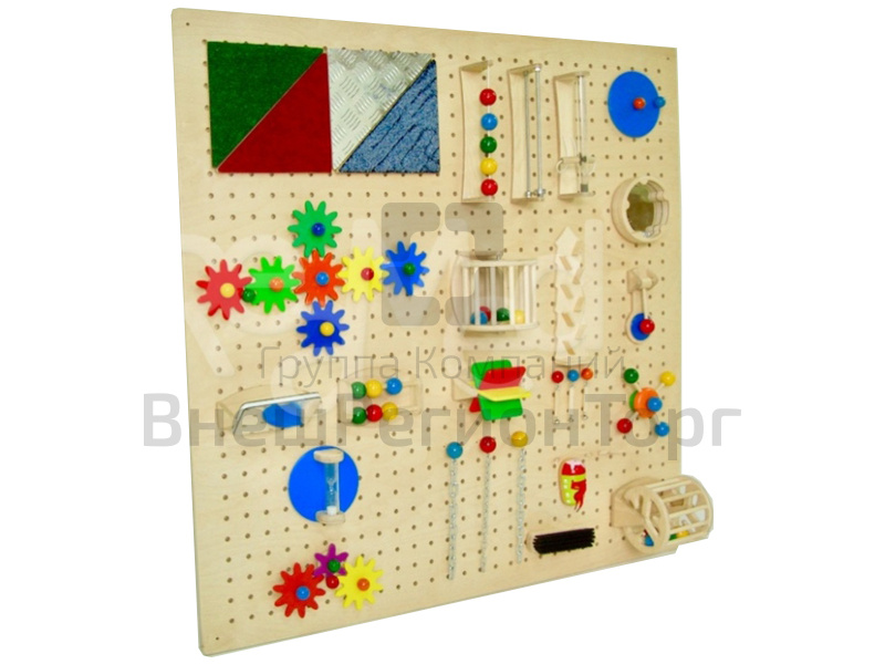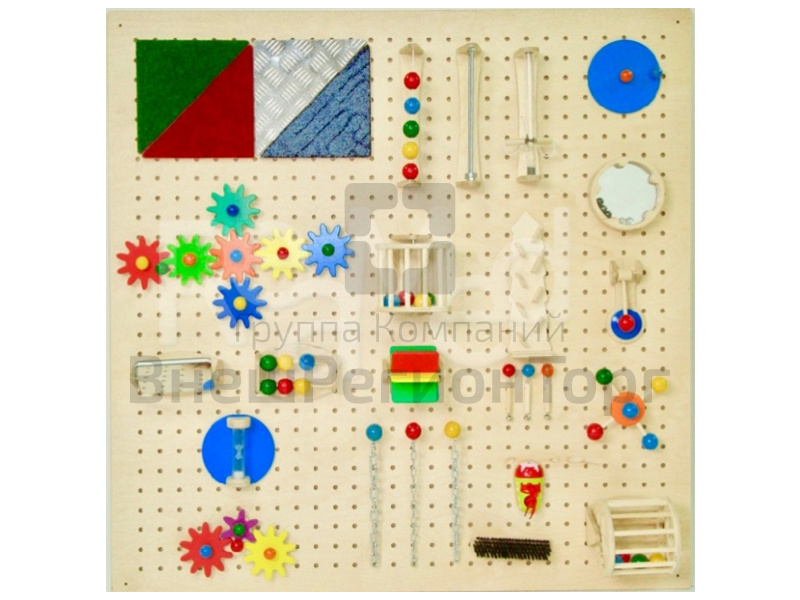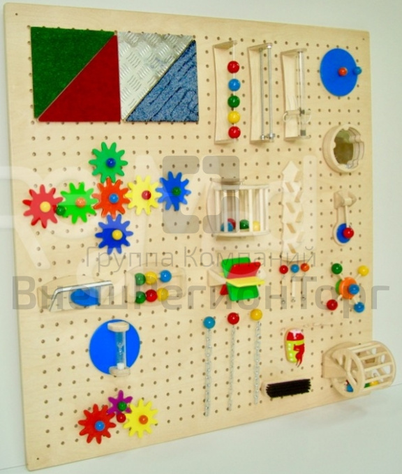 Предназначено для размещения на своей поверхности разнообразных тактильных элементов разных форм, цветов, материалов и текстур.