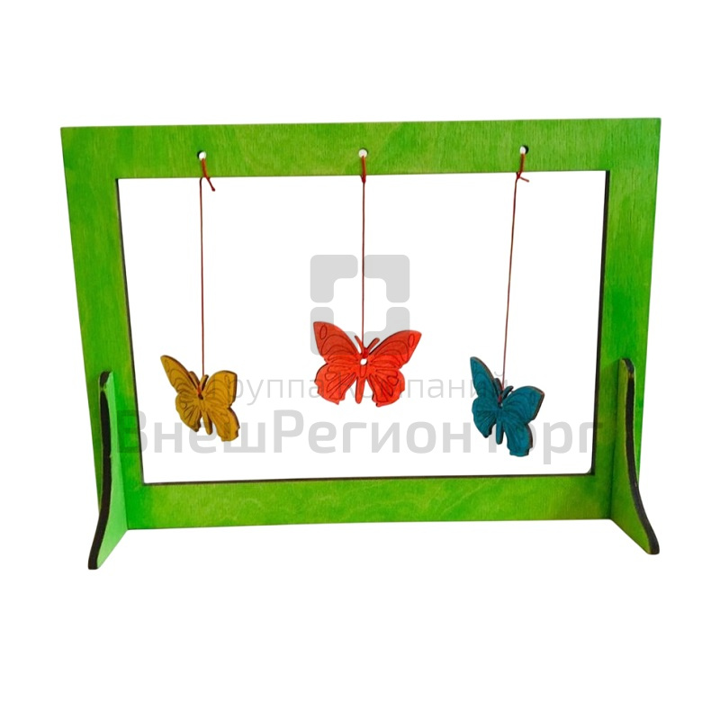 Тренажер собирается самостоятельно, путём постановки рамки на ножки. Ниточка делится на 3 бабочки и подвешивается на нужной вам высоте. Бабочки могут быть подвешены на одной высоте или на разных.