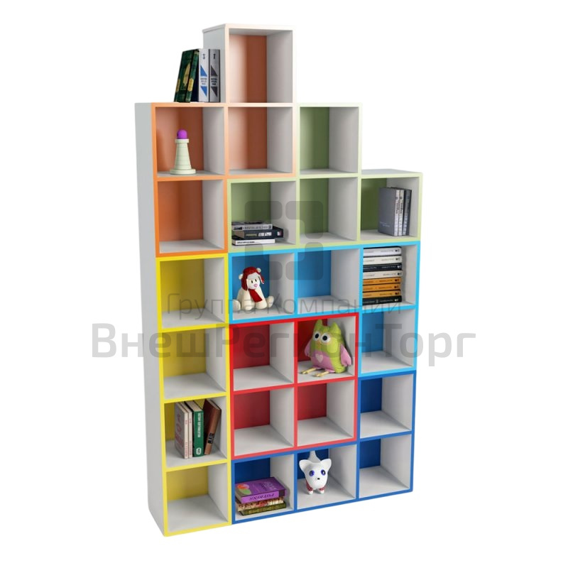 Стеллаж "Тетрис" станет удобным предметом интерьера в детском саду. Благодаря модульной конструкции можно составить стеллаж любых размеров и любой формы. Элементы можно поставить на колеса или повесить на стену. Модель предлагается в готовых 4 комплектах или отдельными элементами.