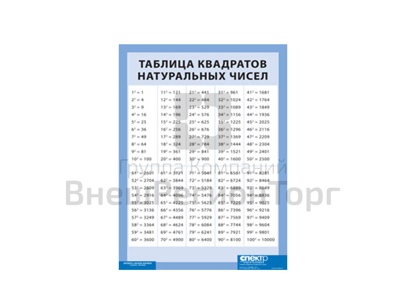 У нас вы можете купить Таблица квадратов натуральных чисел от 1 до 100 (винил), сравнить цены, получить прайс-лист, получить отзывы реальных покупателей. Мы соответствуем требованиям ФГОС, ГОСТ и СанПиН. Мы работаем на основании федеральных законов No44-ФЗ и No223-ФЗ.