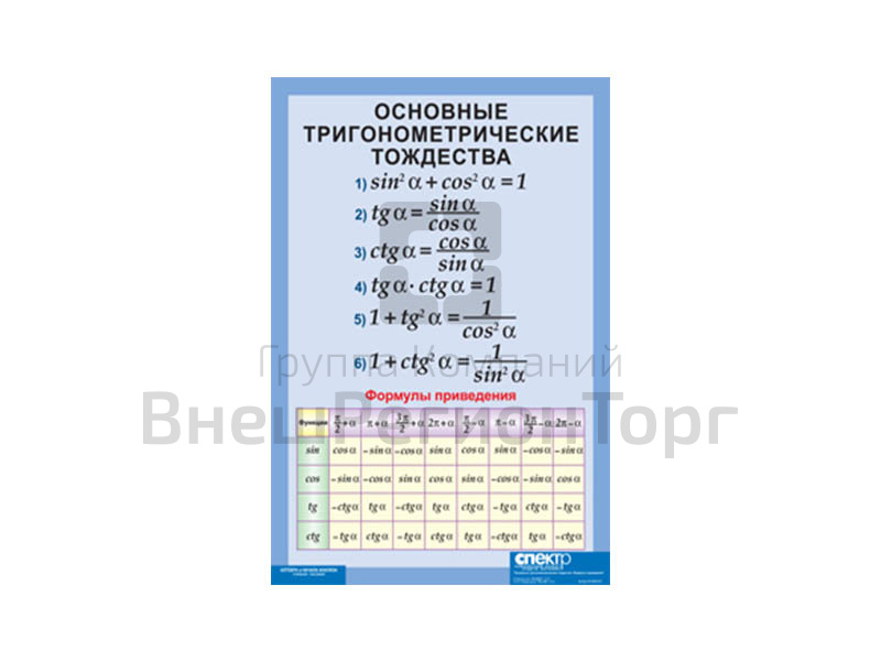 У нас вы можете купить Основные тригонометрические тождества. Формулы приведения (винил), сравнить цены, получить прайс-лист, получить отзывы реальных покупателей. Мы соответствуем требованиям ФГОС, ГОСТ и СанПиН. Мы работаем на основании федеральных законов No44-ФЗ и No223-ФЗ.