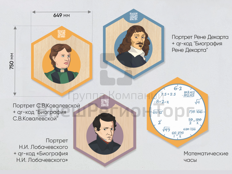 - Портрет Рене Декарта + qr-код «Биография Рене Декарта» (750х649 мм)