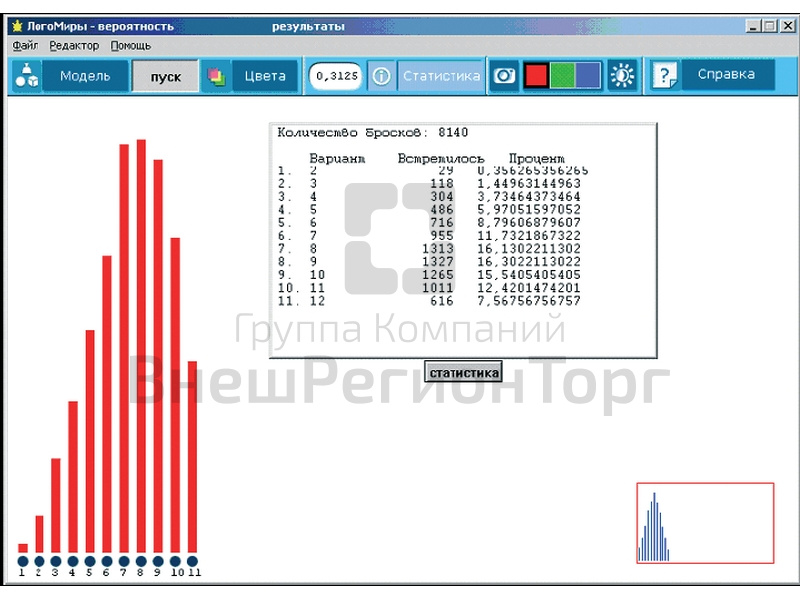 Программа ЛогоМиры Вероятности представляет собой виртуальный практикум. Предназначена для моделирования различных статистических и вероятностных экспериментов, а также проведения численных экспериментов по теории вероятностей и математической статистике.