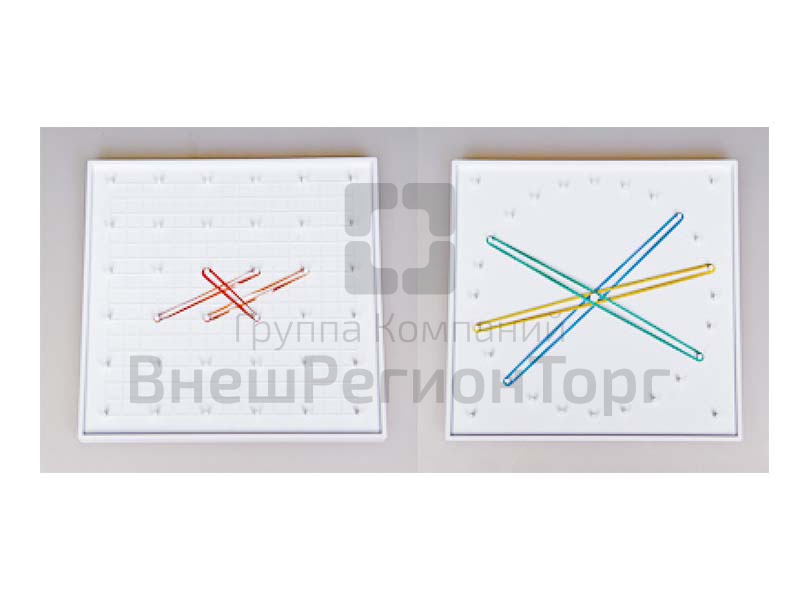 Изделие представляет собой пластиковый математический планшет размером 18х18 см, на одну сторону которого нанесена сетка из выступающих колышков шагом в 3 см, на другую – окружность диаметром 15 см и шагом в 2 см.