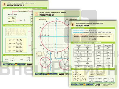 Комплект таблиц по алгебре и началам анализа Числа. Формулы, 6 шт., А4