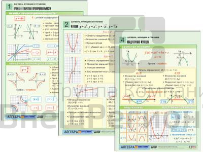 Комплект таблиц по алгебре Алгебра. Функции и графики, 6 шт., А4
