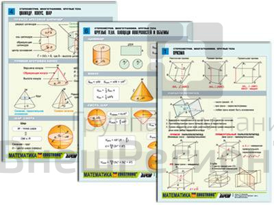 Комплект таблиц по геометрии раздат. Стереометрия. Многогранники. Круглые тела, 6 шт., А4