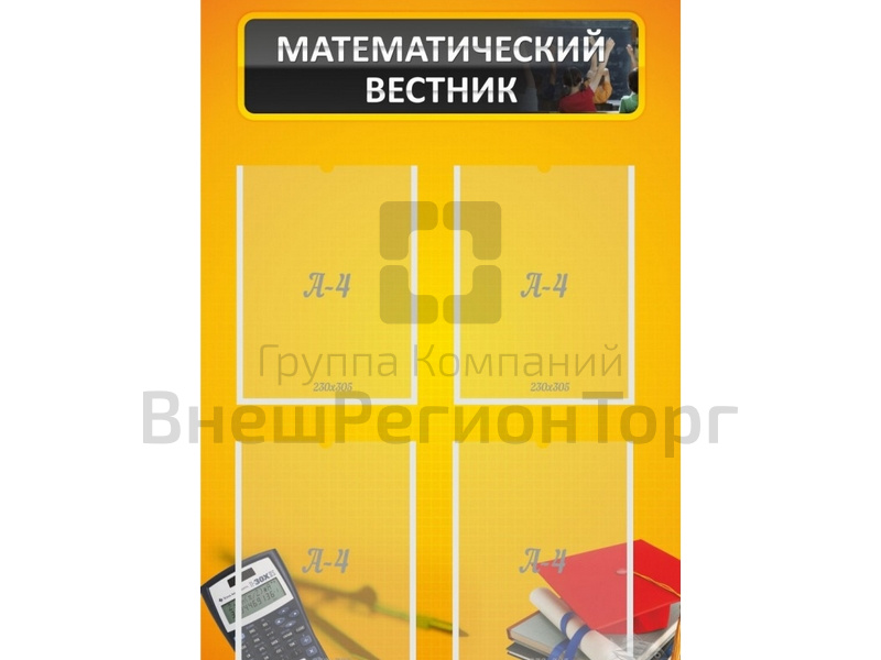 Стенд Математический вестник предназначен для размещения в кабинете математики. Стенд включает четыре кармана А4