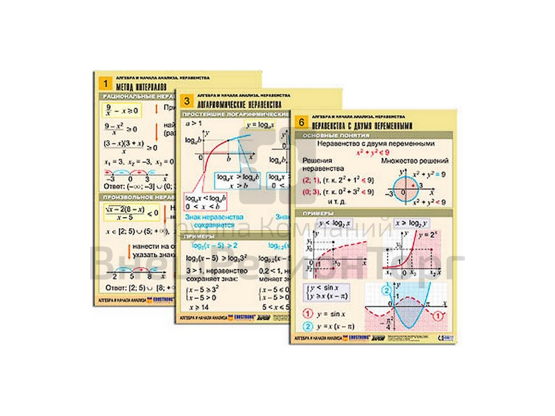 Подробное описание Комплект таблиц Алгебра и начала анализа. Неравенства, 6 таблиц, А1