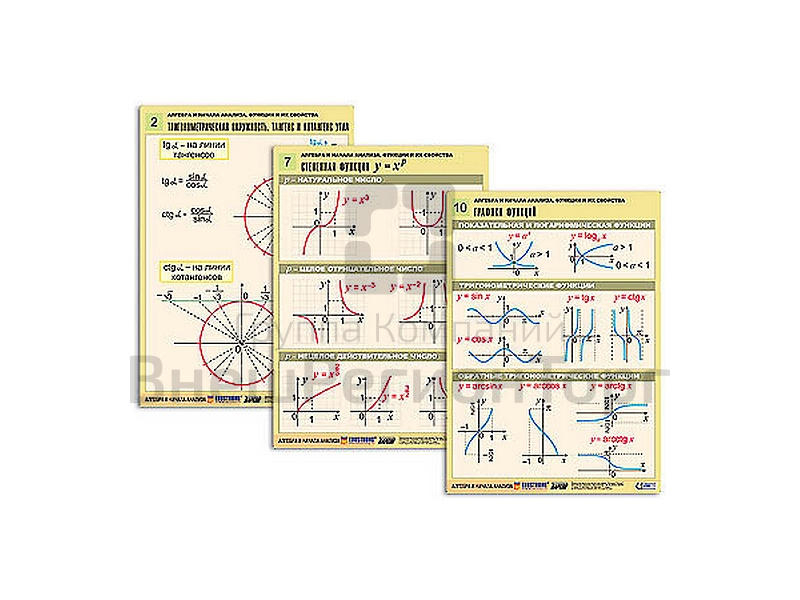 Подробное описание Комплект таблиц Алгебра и начала анализа. Функции и их свойства, 14 таблиц, А1