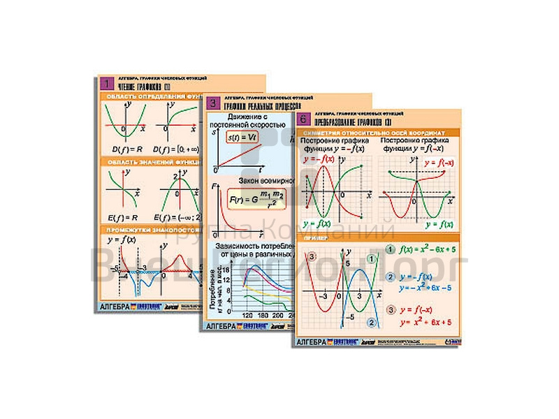 Подробное описание Комплект таблиц по алгебре Алгебра. Графики числовых функций, 6 таблиц, А1
