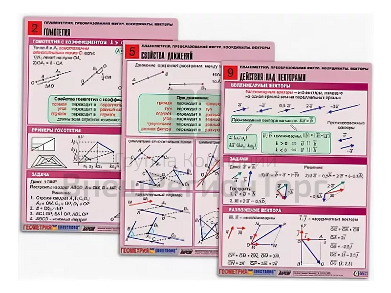 Комплект таблиц по геометрии Планиметрия. Преобразования фигур. Координаты. Векторы, 10 таблиц, А1
