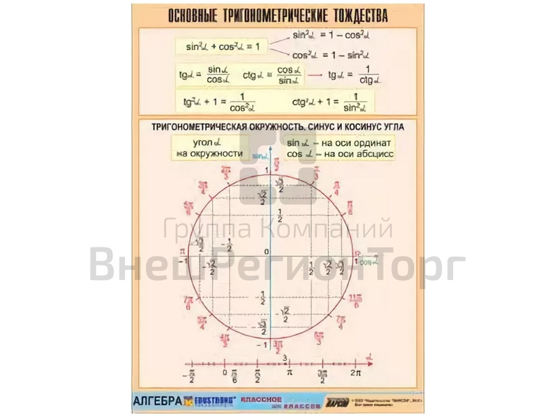 Подробное описание Таблица демонстрационная Основные тригонометрические тождества, 100х140