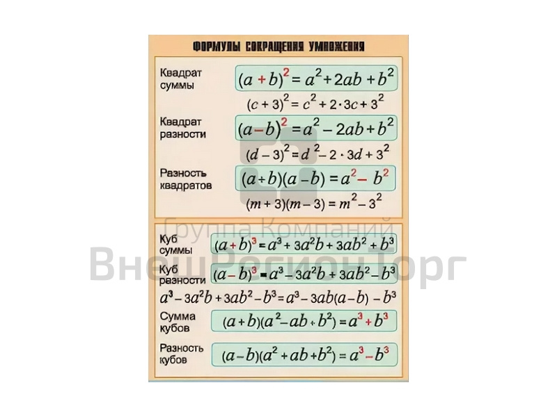 Таблица демонстрационная Формулы сокращения умножения, 100х140