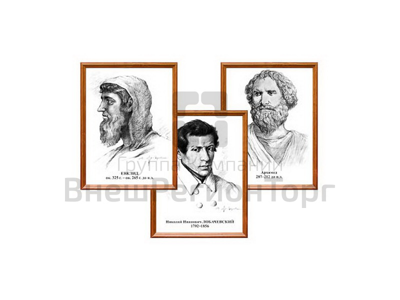 "Портреты выдающихся математиков" (деревянная рамка, под стеклом, комплект 8 шт.)