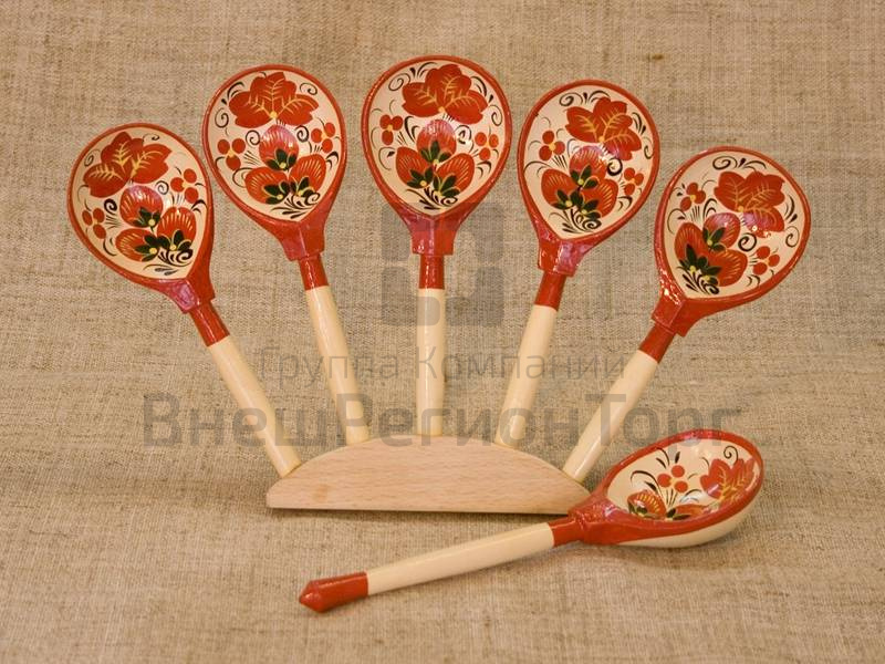 Подробное описание Ложки веерные "пятерка" с городецкой росписью