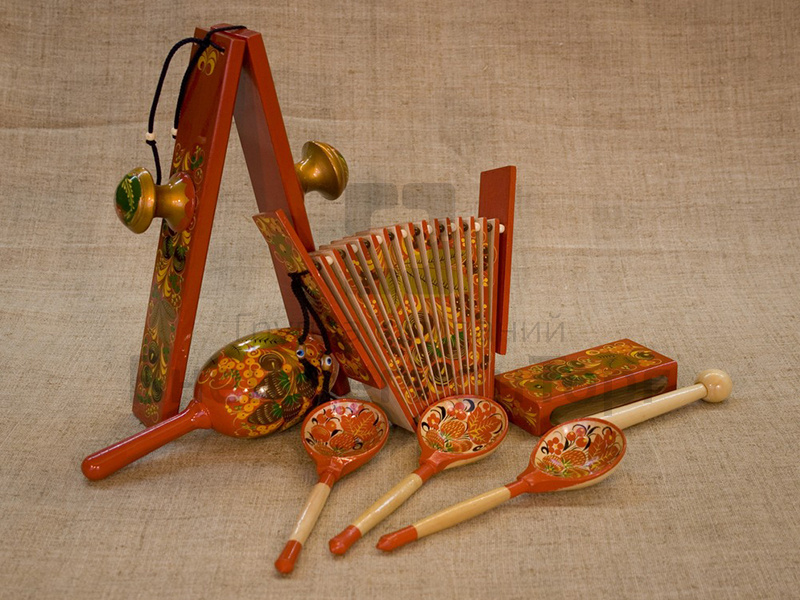 Комплект "Забава" представляет многофункциональный русский народный шумовой ансамбль, где один инструмент может выполнять функцию 3-4 инструментов. Некоторые образцы являются авторскими разработками. К ним относится погремушка комбинированная, сочетающая в себе погремушку (шекер), круглый рубель, тон-блок с диапазоном квинта, "стакан" для тремоло.