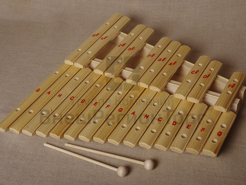 Ксилофон хроматический До мажор, 25 пластин, на высоком резонаторе, ель