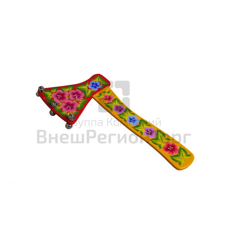 В основании деревянного «лезвия» вставлены 6 бубенцов (по три с каждой стороны).