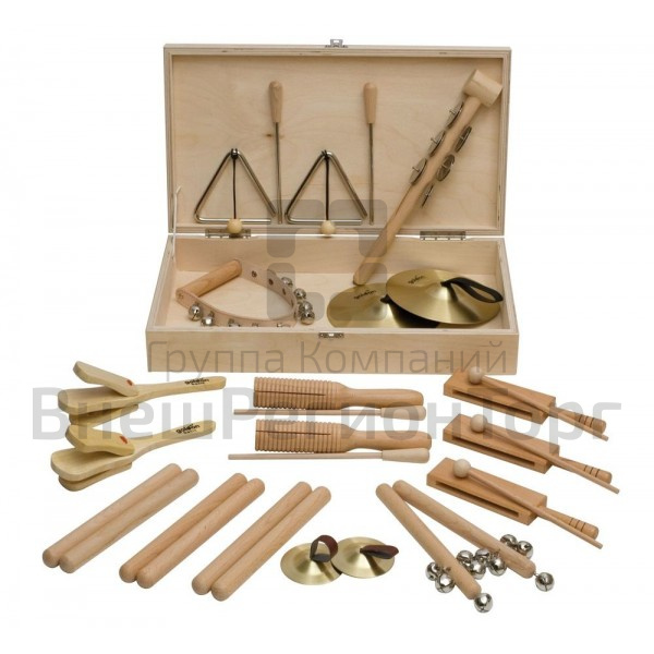 Набор перкуссионный, в деревянном футляре, 18 предметов.