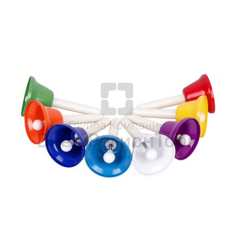 Цветные колокольчики с язычками, на ручках. Fleet 8шт по нотам в упаковке.