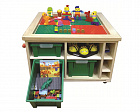 Стол оснащен колесами со стопорами, бортики не дают деталям конструкторов или робота упасть на пол.
