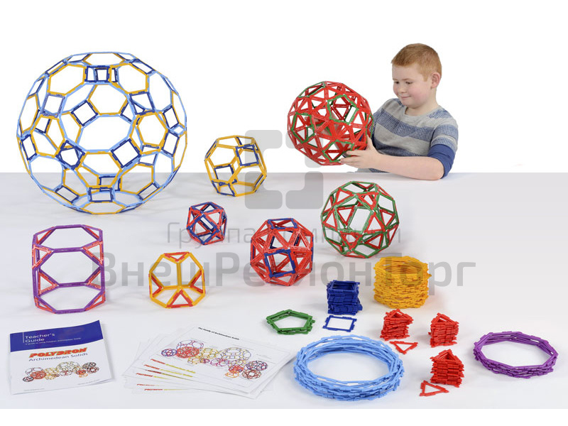 Набор предназначен для групповой игровой деятельности детей, для изучения основ математики, конструирования, моделирования. Состоит из конструктивных элементов различных геометрических фигур каркасного типа с возможностью изучения и сборки всех известных Архимедовых тел (13 шт).