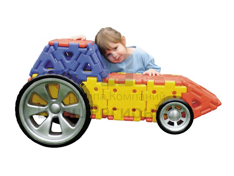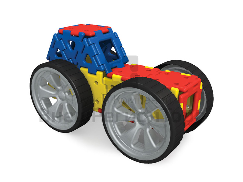 На собранном из квадратов и колес автомобиле можно будет посидеть и даже прокатиться. С помощью колес двух разных размеров можно построить огромное количество великолепных устройств.