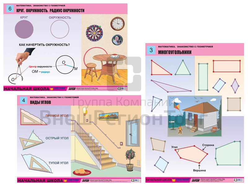 Подробное описание Комплект таблиц Математика. Знакомство с геометрией 6 шт.