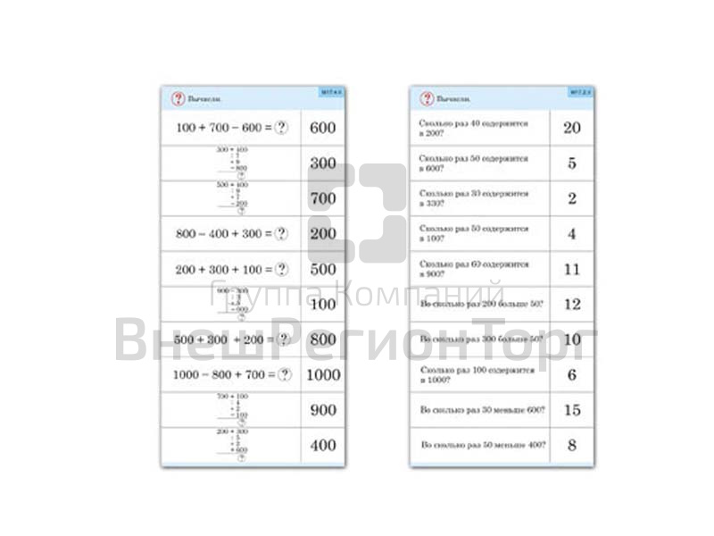 Подробное описание Комплект карточек 10 шт. Обучающий калейдоскоп. Трехзначные числа