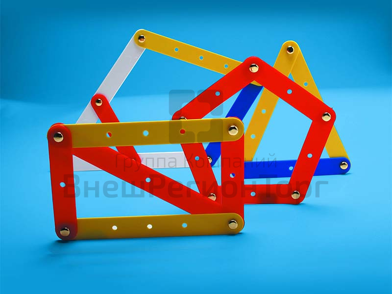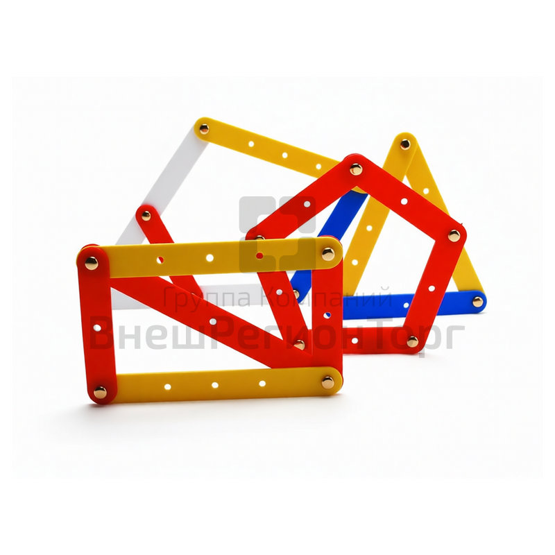 Комплектация: 68 разноцветных планок разной длины с отверстиями, соединительные элементы и 11 карточек с заданиями различной сложности.