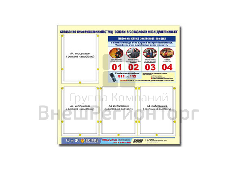 У нас вы можете купить Стенд Основы безопасности жизнедеятельности, 4 кармана, сравнить цены, получить прайс-лист, получить отзывы реальных покупателей. Мы соответствуем требованиям ФГОС, ГОСТ и СанПиН. Мы работаем на основании федеральных законов No44-ФЗ и No223-ФЗ.