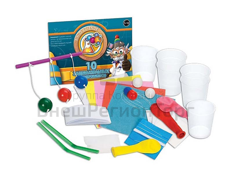 С помощью этого набора юные исследователи смогут провести целых 10 экспериментов! Они выяснят, как действуют центр тяжести, сила магнита, давление воды и воздуха, что происходит под влиянием статического электричества, как сделать простейший фильтр для воды и как обеспечить подъемную силу для бумажной «птицы», а также еще много интересного.