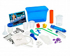 В наборе: пластиковые пробирки и контейнеры, воздушные шары, пластмассовые уточки, шланги, воронка, шипучие таблетки, пипетка, пластмассовый человечек, пищевая сода, резинка, инструкция на русском языке.
