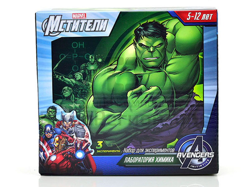 Набор для проведения 3 экспериментов по химии Marvel Мстители Лаборатория химика. Иллюстрированная инструкция содержит подробную информацию по проведению опытов и пояснения. Все компоненты набора сделаны из сертифицированных материалов и абсолютно безопасны для ребёнка