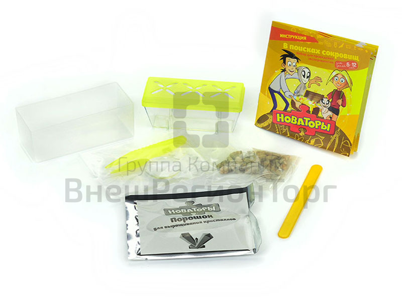 Набор для проведения экспериментов Новаторы В поисках сокровищ предлагает детям самостоятельно вырастить кристаллы. Содержит подробную инструкцию по проведению опытов и пояснения тех или иных явлений.