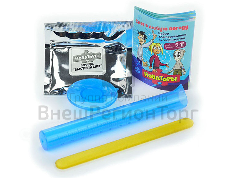 В наборе для проведения экспериментов Новаторы Снег в любую погоду специальное вещество, с которым можно создать нетающий снег.