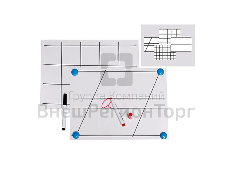 Таблицы ламинированы глянцевой пленкой, применяются по принципу "пиши–стирай". Используется маркер для белых досок. Написанное стирается сухой тряпкой.
