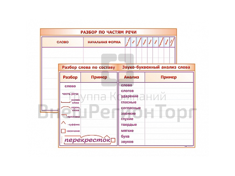 Двухсторонний маркерный планшет содержит расчерченные таблицы к уроку русского языка. Предназначен для выполнения упражнений по темам: "Разбор по частям речи", "Разбор слова по составу", "Звуко-буквенный анализ слова". На поверхности планшета можно писать цветными маркерами, которые идут в комплекте. Крепится на магнитную доску при помощи магнитов-держателей или кнопок, для которых предусмотрены отверстия.