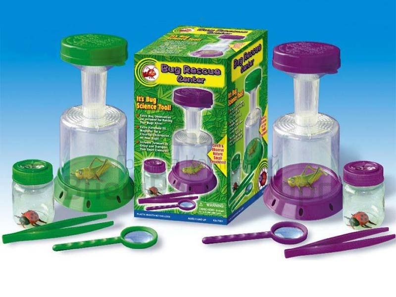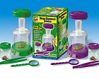 Комплект позволяет рассмотреть насекомое с помощью ручной лупы в стаканчике, а затем пересадить его в большую колбу для долговременного наблюдения.
