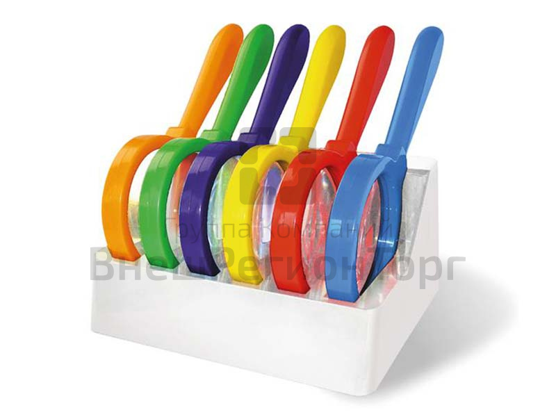 В комплекте 6 луп в удобной для хранения подставке. Предназначены для организации познавательно-исследовательской деятельности дошкольников.