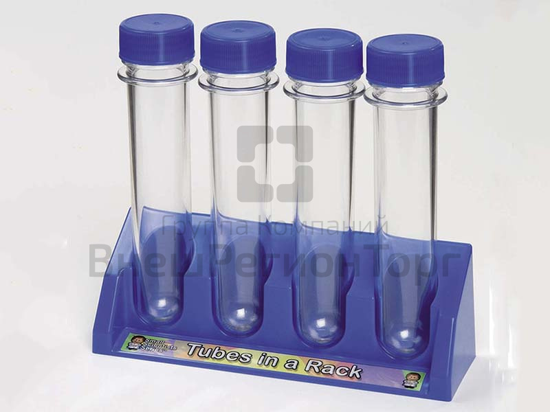 В комплект входит: подставка с выемками под пробирки, 4 пробирки с завинчивающейся крышкой.