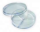 Чашка Петри стерильная, круглой формы поделена на 3 секции для посева культуры на различные среды. Использование трехсекционных чашек позволяет снизить расходы питательной среды и сделать посев одной культуры на различные среды в одной чашке.