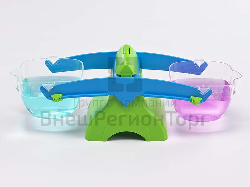 Детские весы с глубокими прозрачными чашечками предназначены для взвешивания жидкостей и сыпучих материалов. С помощью весов можно наглядно объяснить понятие объема.